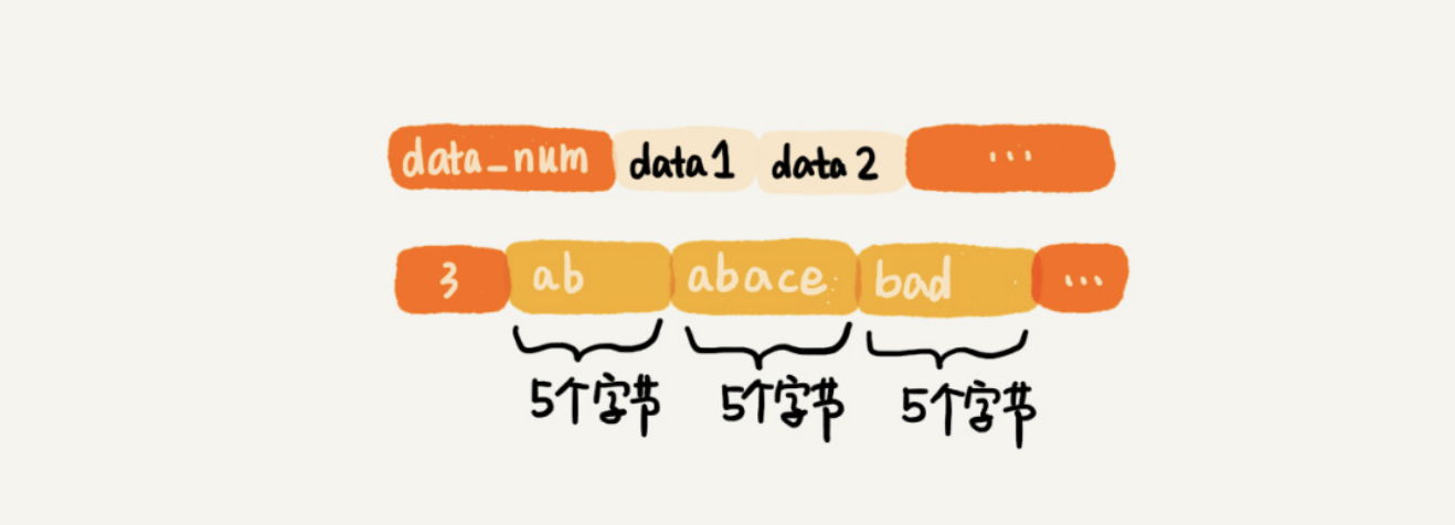 听到“压缩”两个字,直观的反应就是节省内存。之所以说这种存储结构节省内存,是相较于数组的存储思路而言的。我们知道,数组要求每个元素的大小相同,如果我们要存储不同长度的字符串,那我们就需要用最大长度的字符串大小作为元素的大小(假设是 20 个字节)。那当我们存储小于 20 个字节长度的字符串的时候,便会浪费部分存储空间。听起来有点儿拗口,我画个图解释一下。