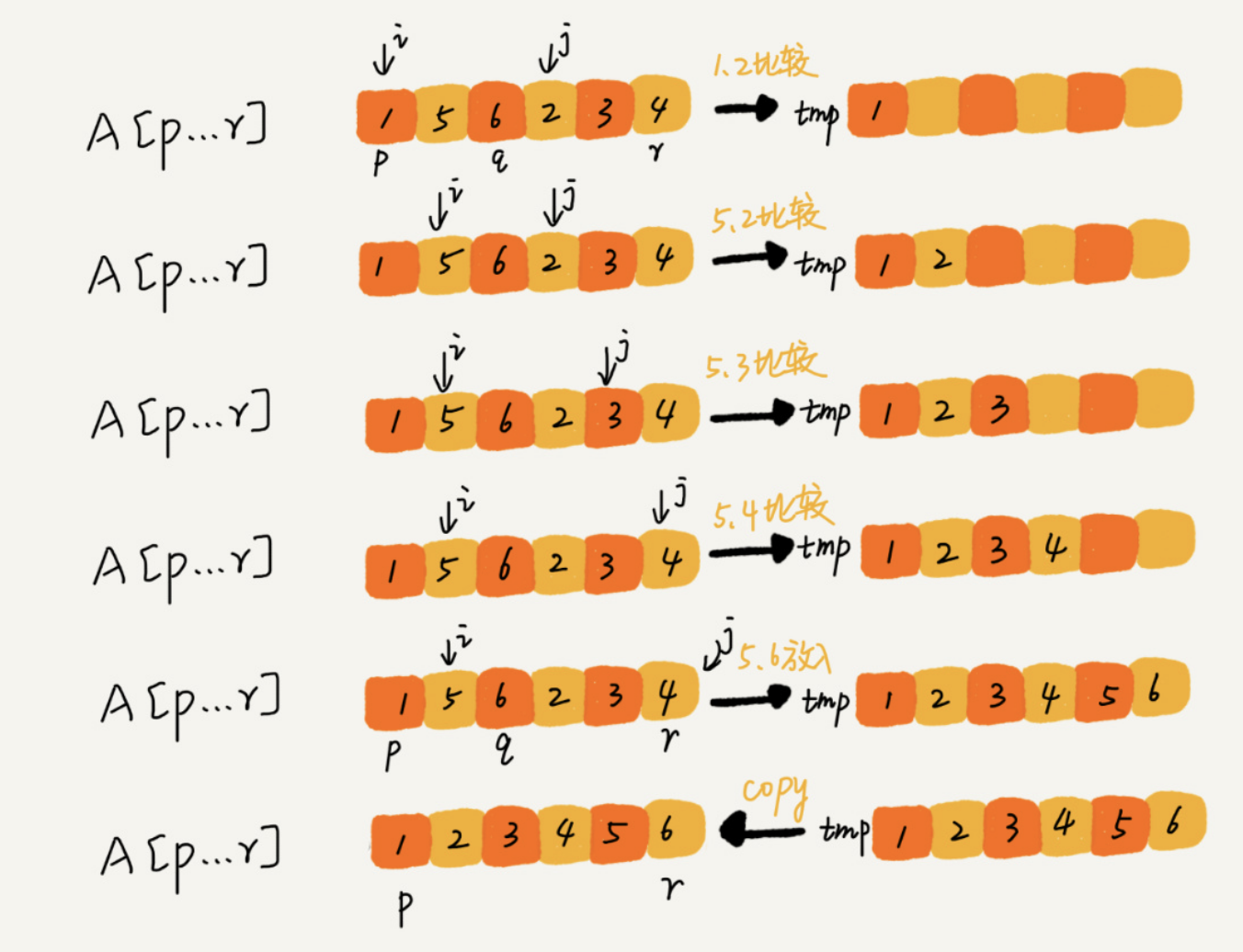 // 将 tmp 中的数组拷贝回 A[p...r]