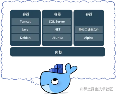 - Docker 是一个开源的应用容器引擎。开发者可以将自己的应用打包在自己的镜像里面,然后迁移到其他平台的 Docker 中。镜像中可以存放你自己自定义的运行环境,文件,代码,设置等等内容,再也不用担心环境造成的运行问题。镜像共享运行机器的系统内核。