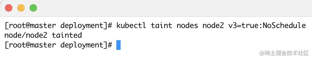 我们给 Node3 添加完一个污点后,提示报 node/node2 tainted 代表添加成功: