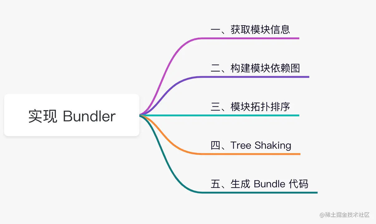 当然,Tree Shaking 的实现也是很重要的一环,我会带你实现一个基于 import/export 符号分析的 Tree Shaking 效果,保证只有被 import 的部分被打包进产物。最后,我们便可以输出完整的 Bundle 代码,完成模块打包。