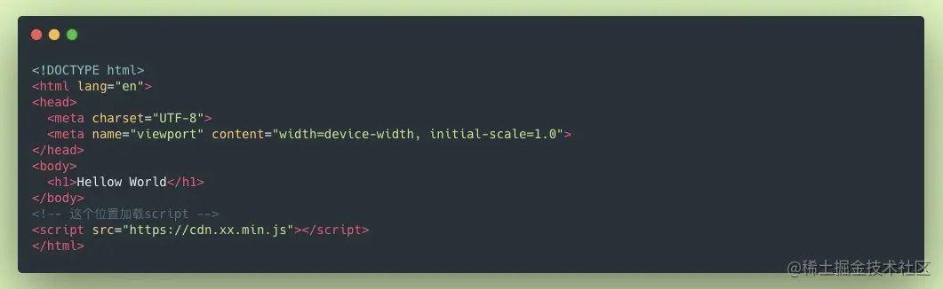 稍微回忆一下单线程架构,传统html开发的时候,官方建议script加载js的时候放在Body下方位置。就像下图。