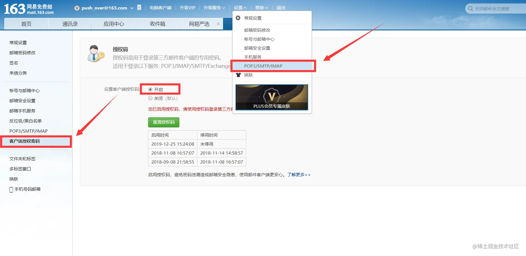 要发送邮件,我们需要有自己的邮箱,还要获取到授权码,那怎么获取到授权码呢? 如下图以 163 为例: