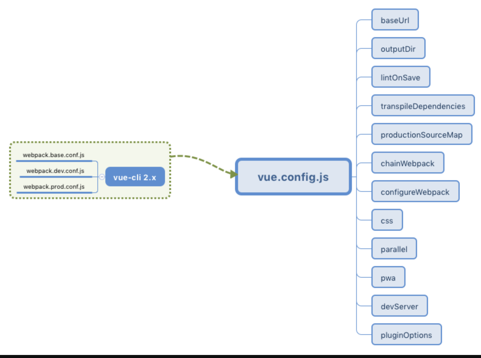 通过上方新老版本的对比,我们可以清晰的看出 vue.config.js 的配置项结构,如果你构建的项目中没有该文件,那么你需要在根目录手动创建它。下面我们就来介绍一下其常用配置项的功能和用途: