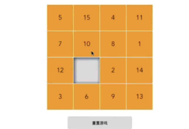 这一便实现了数组的随机打乱。最后我们需要在数组末尾追加一个空值来显示唯一一个空白格子: