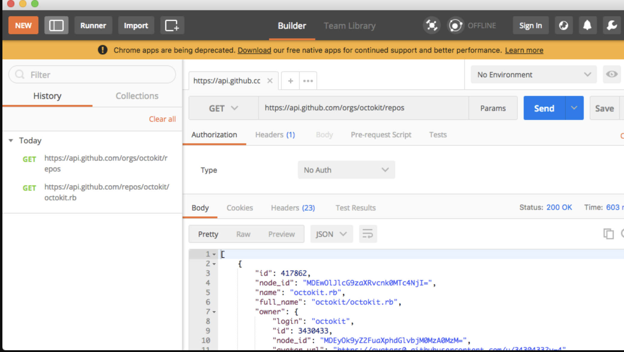 Postman 会当作 Chrome 应用程序安装到你的电脑上,打开后我们可以选择请求方式(GET/POST),输入请求 URL 以及设置传递参数来进行接口的调用。
