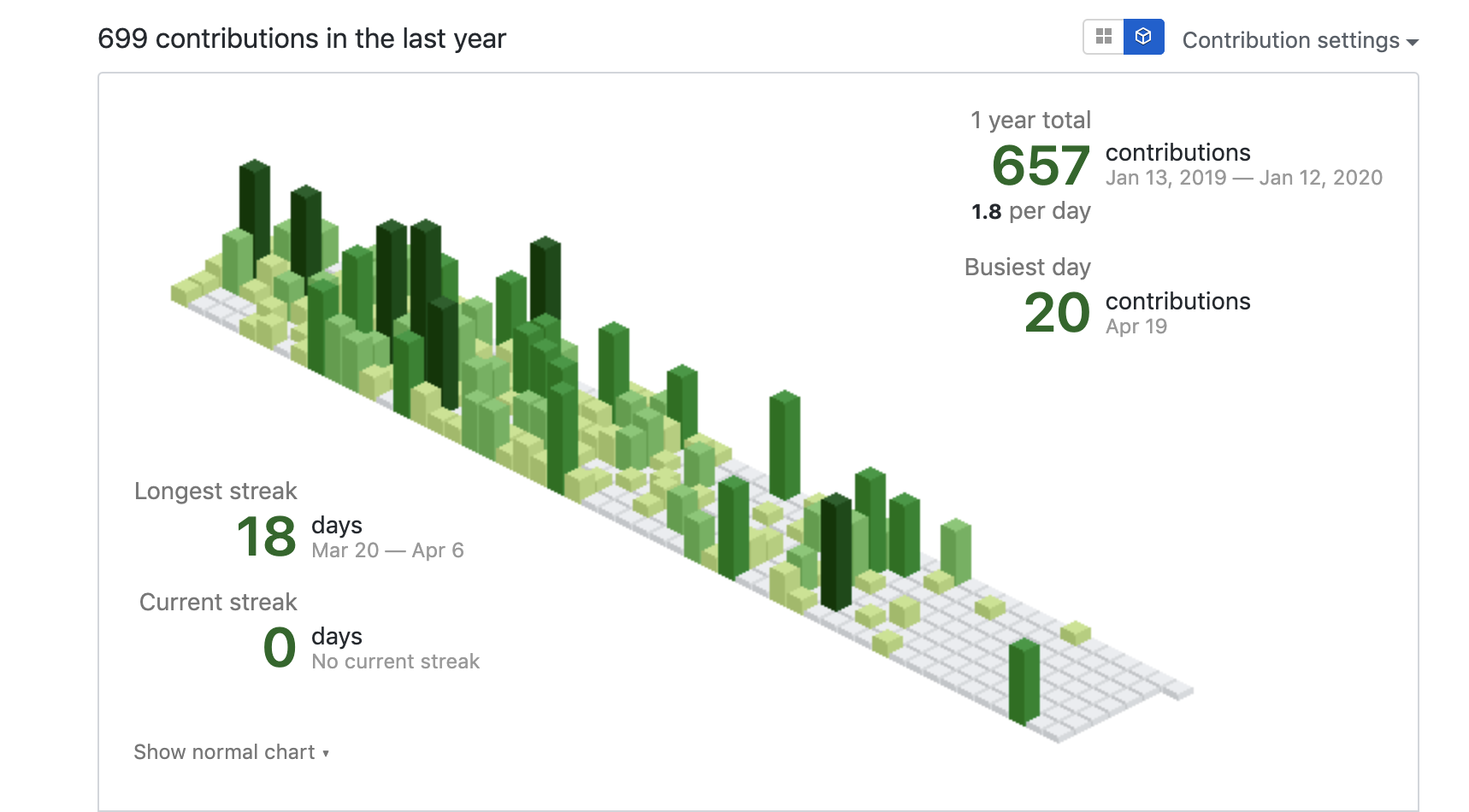 更炫酷的3D立体方式渲染 GitHub 贡献图。