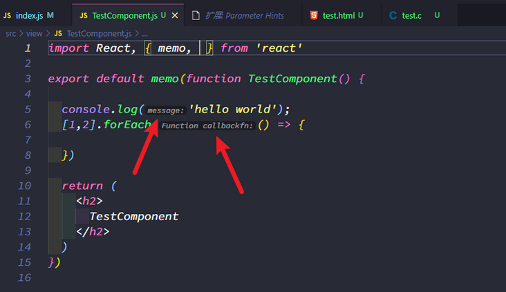 Parameter Hints - 功能:提示函数的参数类型及消息